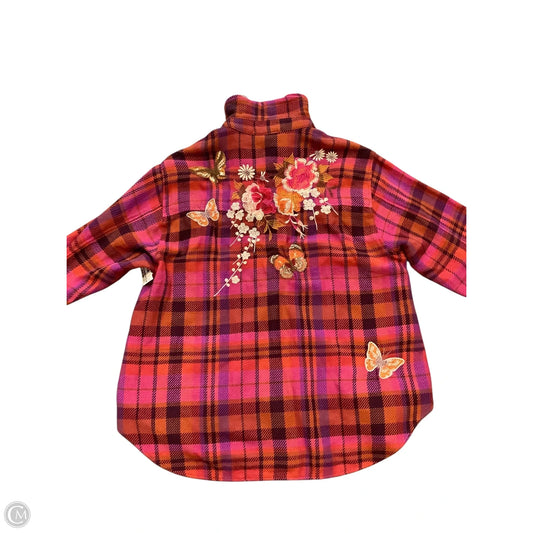 Jacket Shirt By Johnny Was In Pink & Red, Size: Xl